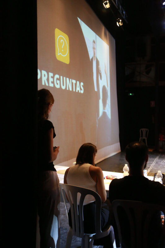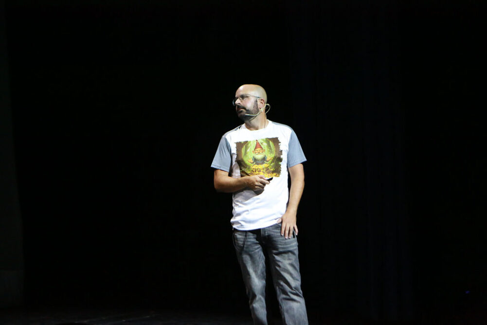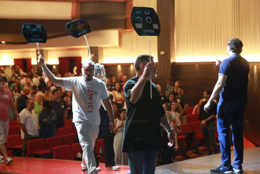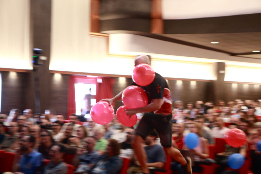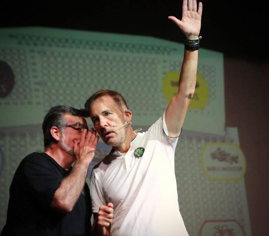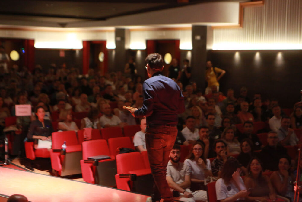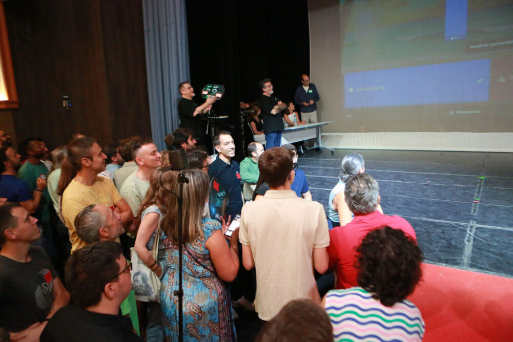 Nervios compartidos por todo el equipo de voluntarios apelotonados en bambalinas, corriendo de un lado a otro, cada cual con su pequeña misión, atentos a cualquier cosa que pudiera fallar. Abrazos sentidos tras el telón entre ponentes, presentadores y voluntarios instantes antes de salir al escenario. Risas silenciadas de camaradería, arreglos de disfraces y consejos de última hora mientras se colocan los micrófonos.