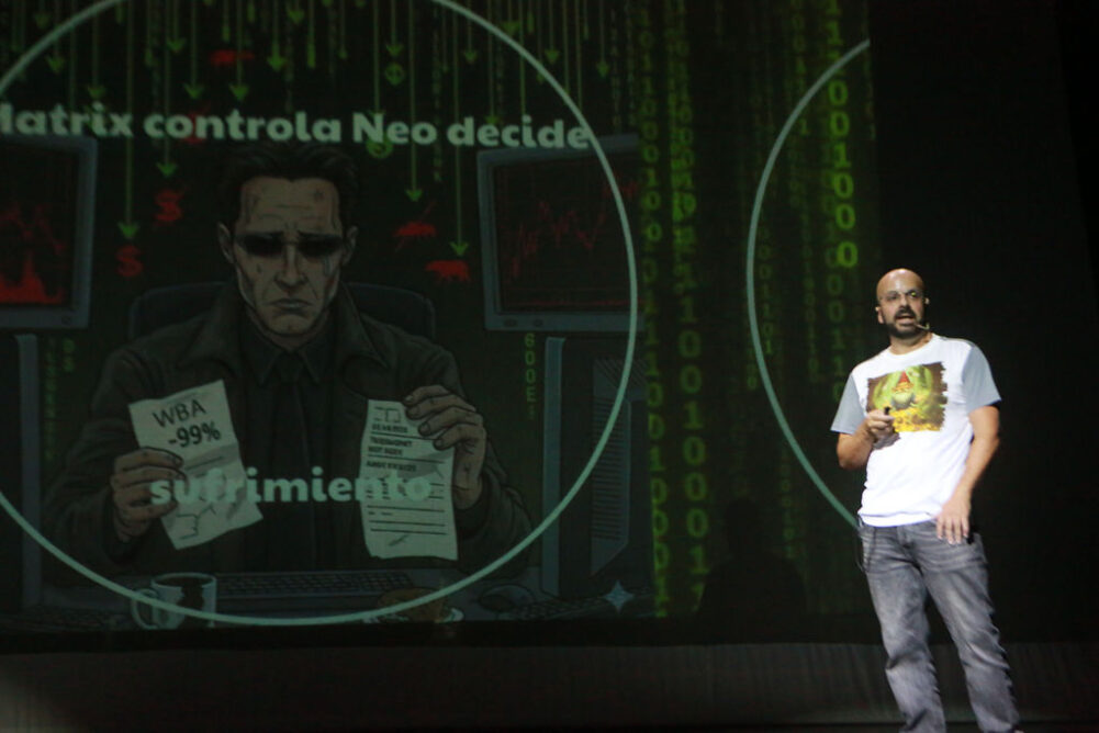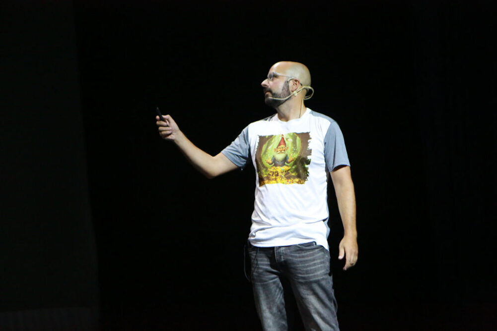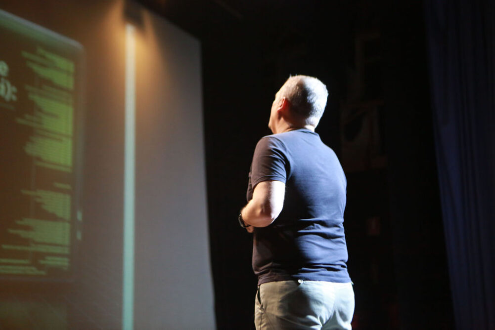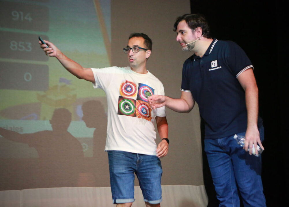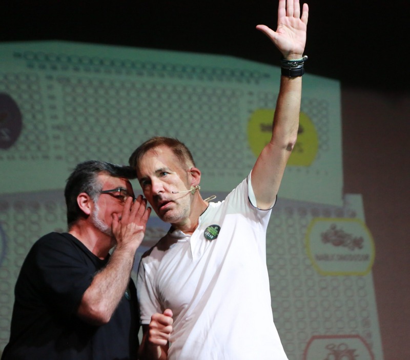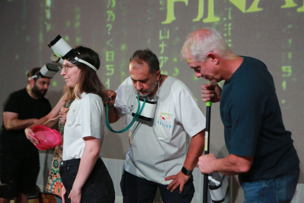 Nervios compartidos por todo el equipo de voluntarios apelotonados en bambalinas, corriendo de un lado a otro, cada cual con su pequeña misión, atentos a cualquier cosa que pudiera fallar. Abrazos sentidos tras el telón entre ponentes, presentadores y voluntarios instantes antes de salir al escenario. Risas silenciadas de camaradería, arreglos de disfraces y consejos de última hora mientras se colocan los micrófonos.