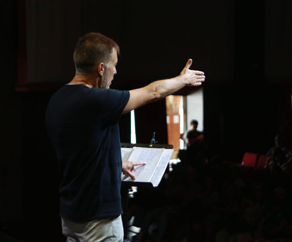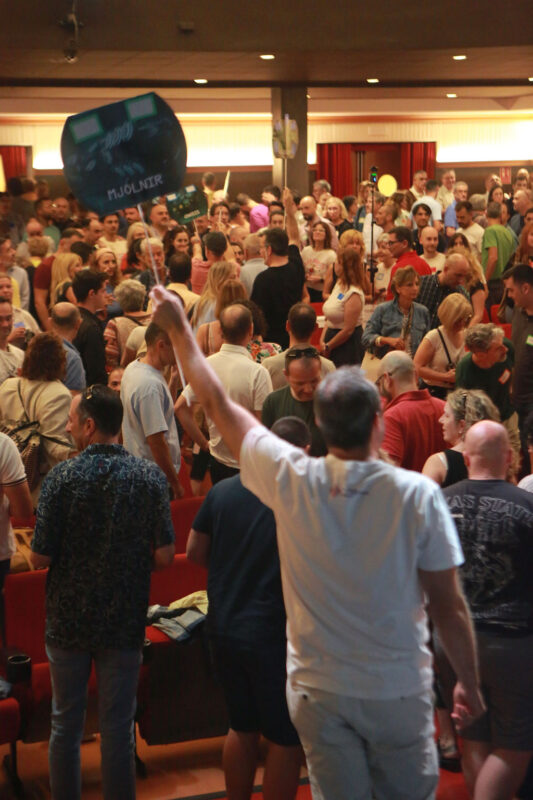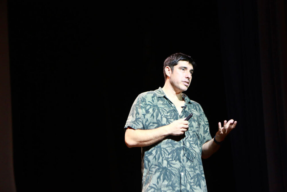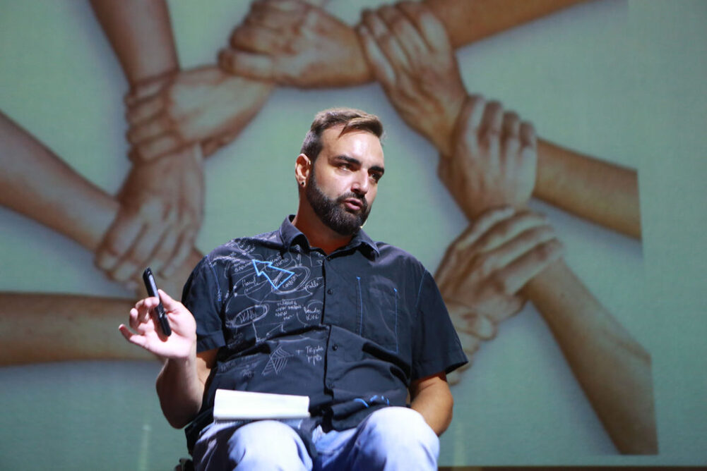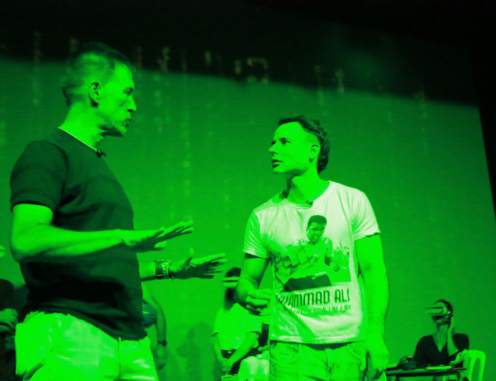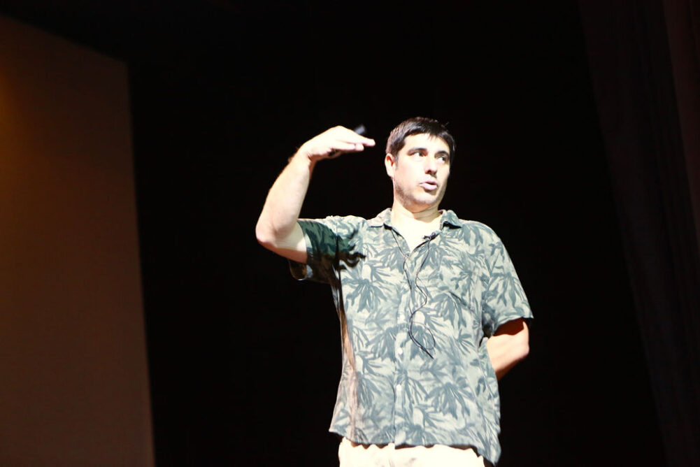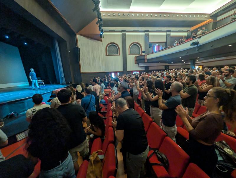 Nervios compartidos por todo el equipo de voluntarios apelotonados en bambalinas, corriendo de un lado a otro, cada cual con su pequeña misión, atentos a cualquier cosa que pudiera fallar. Abrazos sentidos tras el telón entre ponentes, presentadores y voluntarios instantes antes de salir al escenario. Risas silenciadas de camaradería, arreglos de disfraces y consejos de última hora mientras se colocan los micrófonos.